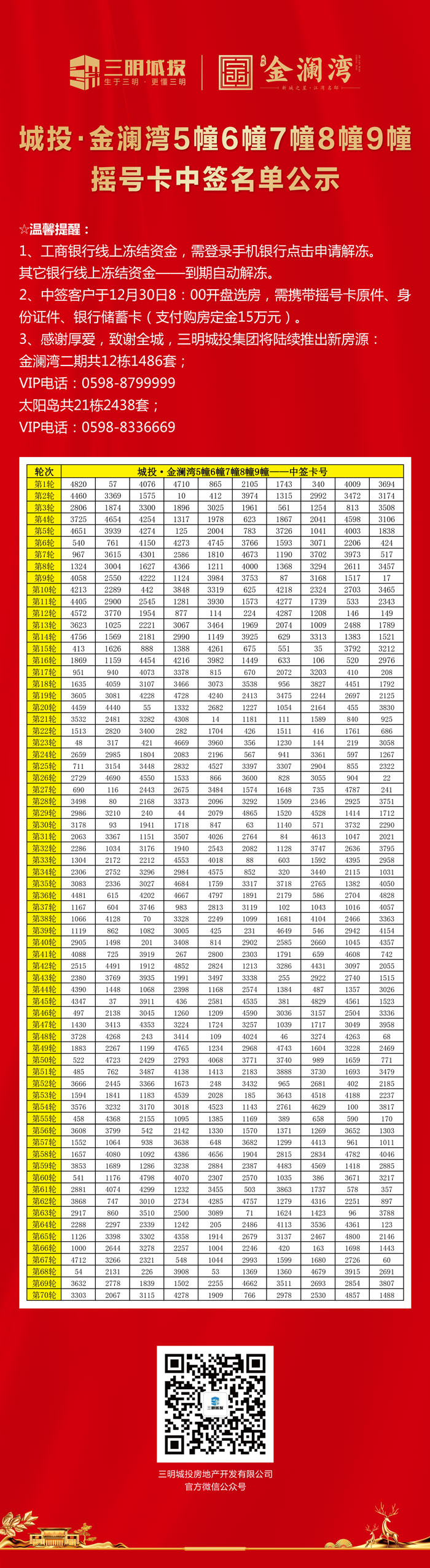 城投·金澜湾5幢6幢7幢8幢9幢开盘活动摇号卡中签名单公示